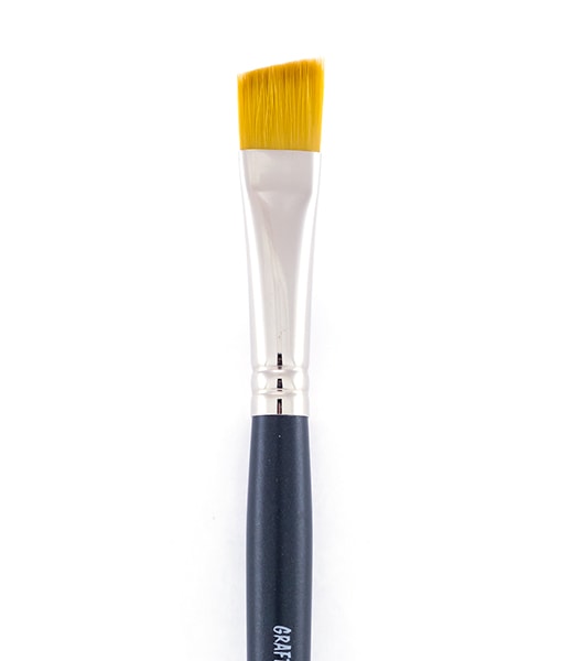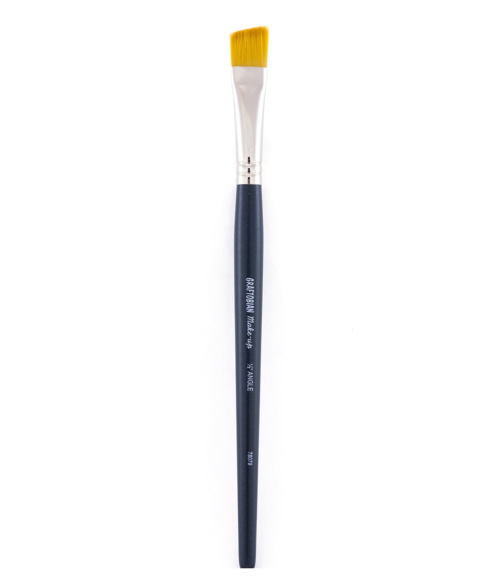 To satisfy our strict requirements, our brushes are made from synthetic fibers, long known for their durability, resilience and quality. They allow face and body painters to perform artistry properly and professionally. These brushes will perform well with either Disguise Stix® Face Paint or ProPaint™ Professional Body Paint. Use angle brushes brushes, like this 1/2" angle, for creating lines and flowing scripts. The angle cut on the bristles makes it easy to create a line of variable thickness. The short bristles allow for maximum control in creating beautiful designs. Similar to flat brushes, angle brushes can also be used for laying down blocks of color in small to medium areas. This 1/2" angle brush is ideal for creating medium to large lines and details, as well as filling in medium blocks of color.