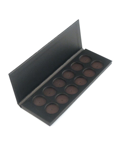 Have you ever wanted to create your very own custom pressed powder palette? Our empty 12-well magnetic palette makes that dream come true! This black soft-touch palette holds a custom selection of any twelve of our pressed powder refill pans. The palette holds each pan in place with a strong magnet. Since there is no adhesive used, each pan can be replaced with ease. Tired of an eye shadow color? Need a special powder shade? Simply pop out what you don't need and replace with what you do. We standardized all our pressed powders to be able to fit this 12-well magnetic palette, so the combinations are absolutely endless. The selection of refills includes: Ultrasilk Matte Eye Shadows, Mineral Eye Shadows, FantasEyes™ Bold Fantasy Eye Shadows, Ultra HD Pro Powder™ Foundations, Bronzers, Cake Eye Liners and Blushes. Mix and match to your heart's content.