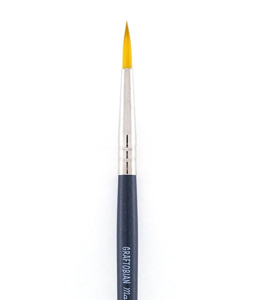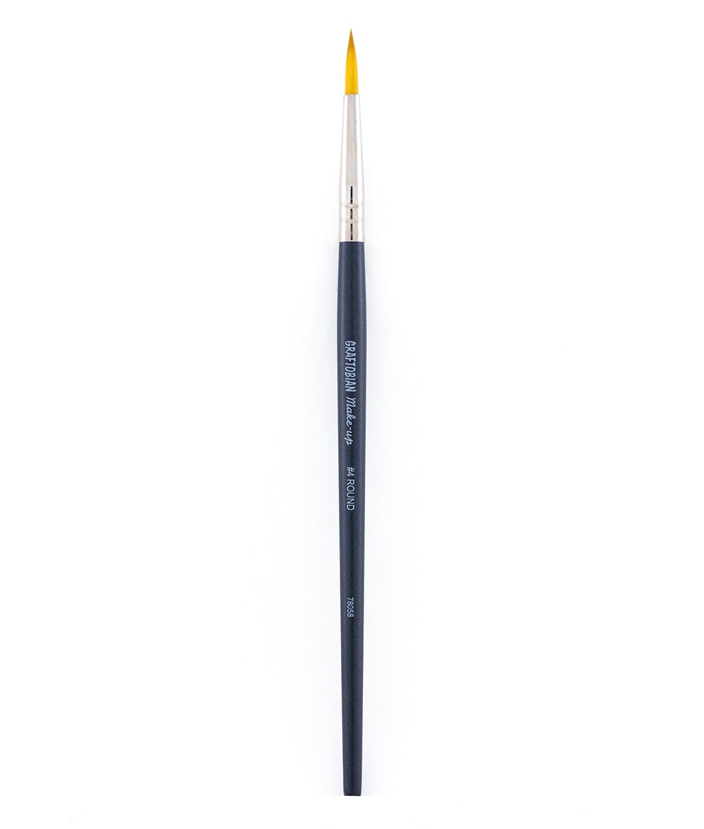 To satisfy our strict requirements, our brushes are made from synthetic fibers, long known for their durability, resilience and quality. They allow face and body painters to perform artistry properly and professionally. These brushes will perform well with either Disguise Stix® Face Paint or ProPaint™ Professional Body Paint. Use round brushes, like this #4 round, for drawing lines and and details. Round brushes are often used for sketching out designs before they are painted and filled with color. The long bristles create smooth, flowing lines or scripts. These are also good brush for creating spots and dots. This #4 round brush is ideal for sketching designs and major detail work, such as large lines and dots.