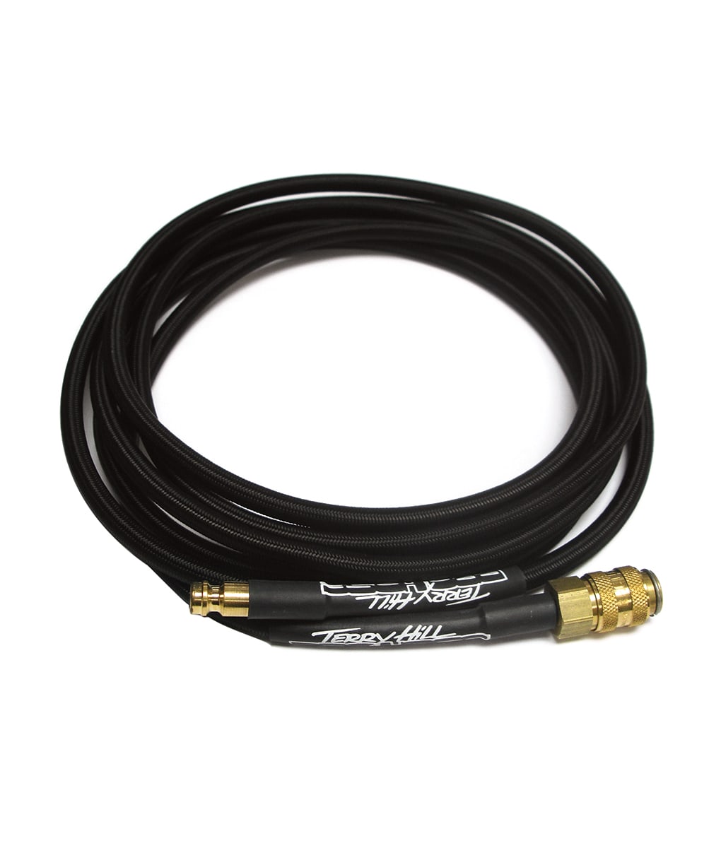 #20061 Supply Hose: This 10-foot hose is a longer length and a larger diameter than the airbrush hoses. It is made of a high quality woven nylon, which is wrapped over a strong, flexible rubber core. The hose connects the Air Rail™ manifold to the #20 quick connect fitting. This fitting then screws into the compressor. This is the main black hose of the FX Air Deluxe Airbrush System. If you are purchasing the Airbrush System Expansion Kit, you will need on of these hoses and #20075 adapter to connect it to your Smart Jet Pro Compressor.