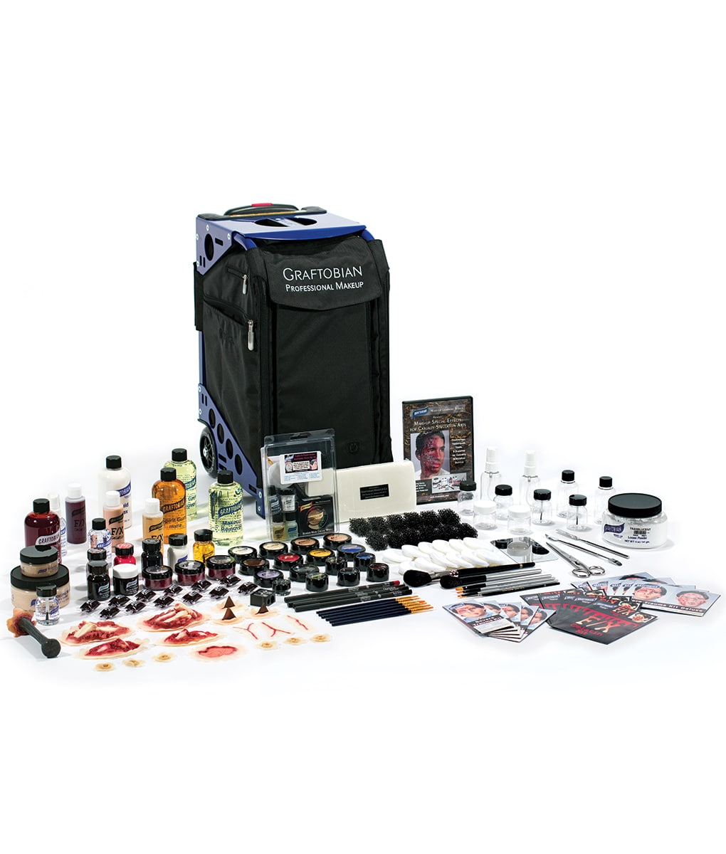 We don't pad our kits with standard household items you can obtain at the corner drug store. We supply you with a nearly indestructible sturdy aluminum-framed professional Zuca Artist Makeup Case filled to the brim with special FX moulage makeup. This kit is ideal for EMS trauma simulation, but also perfect for haunted houses looking to use professional level, realistic special effects makeup. The supplies included in the kit are the hard-to-find items that will make your special FX moulage makeup experience go more smoothly.