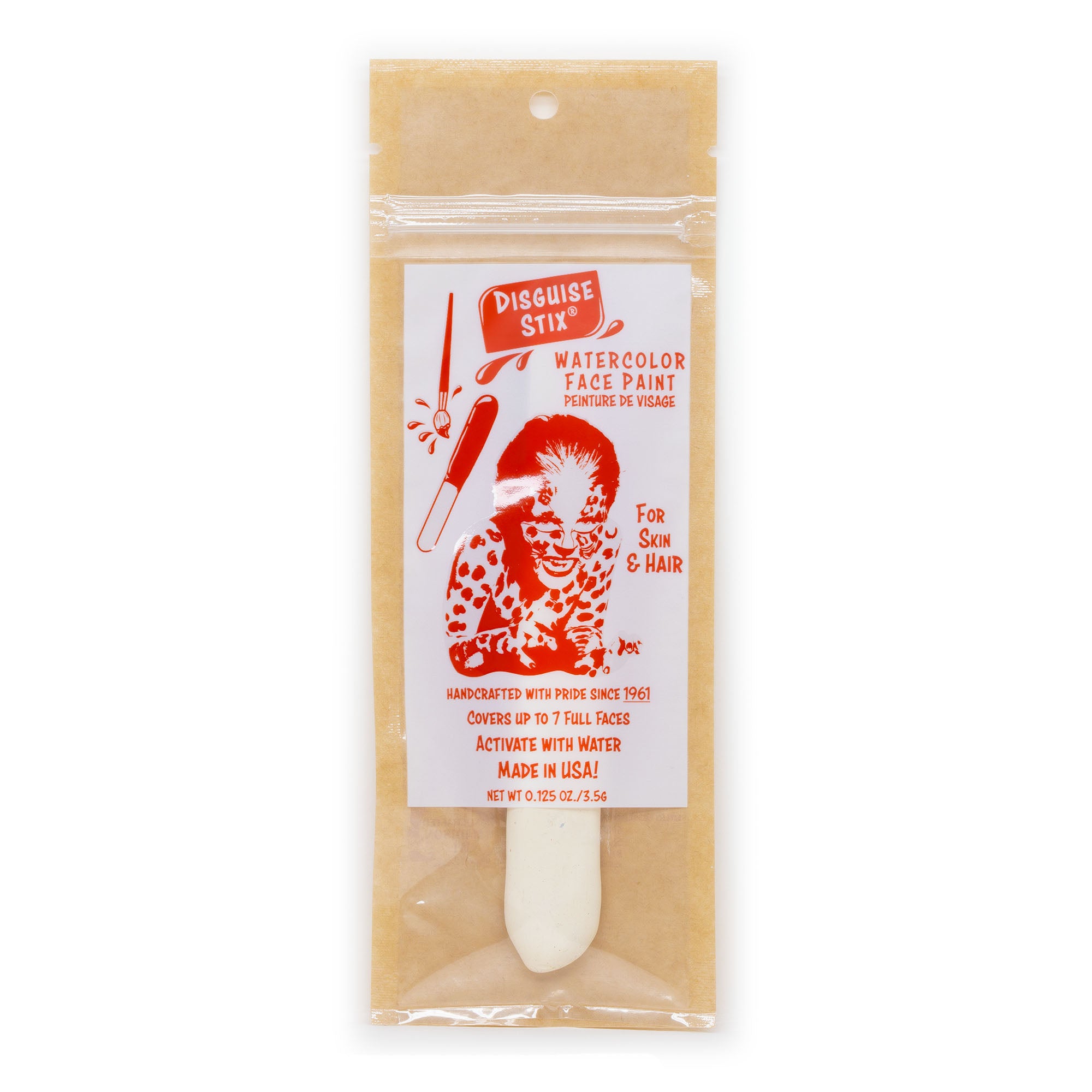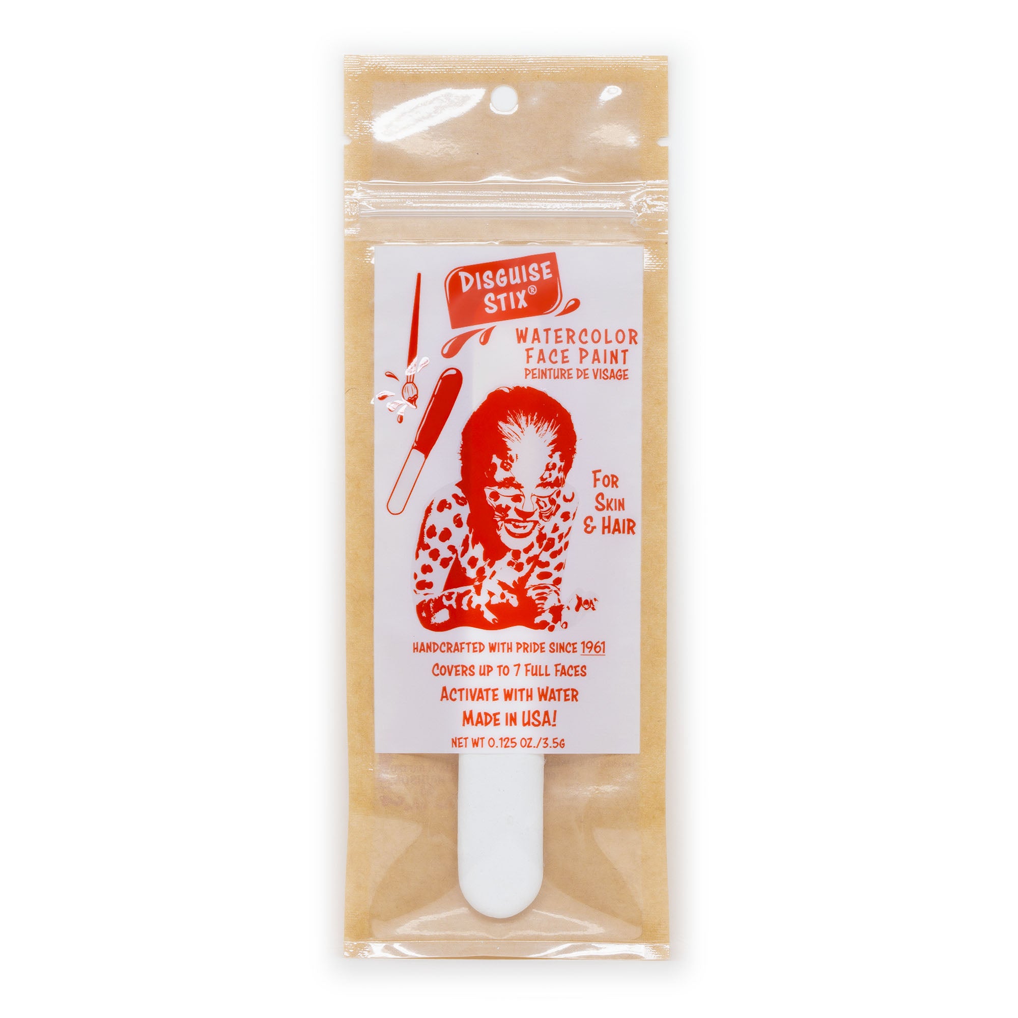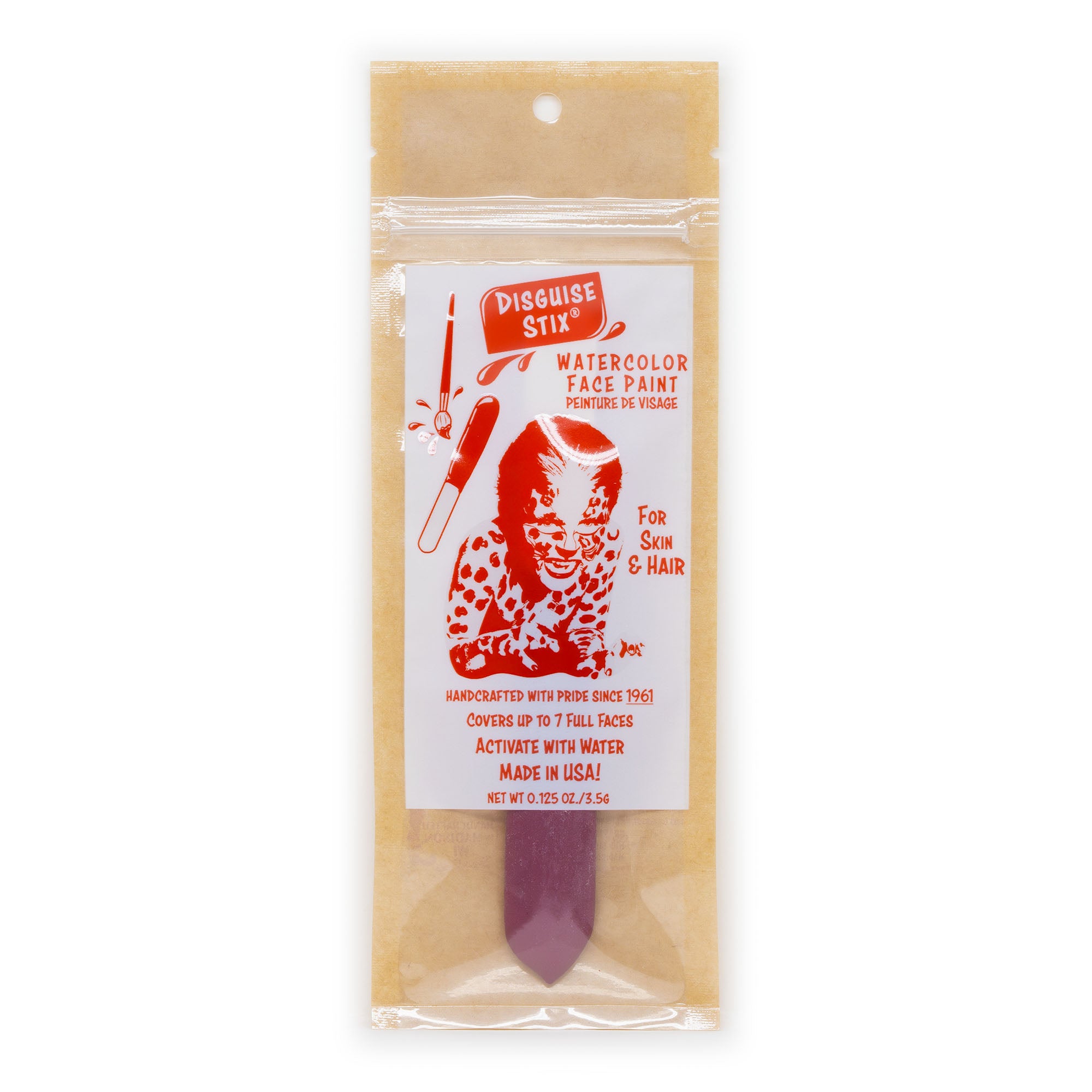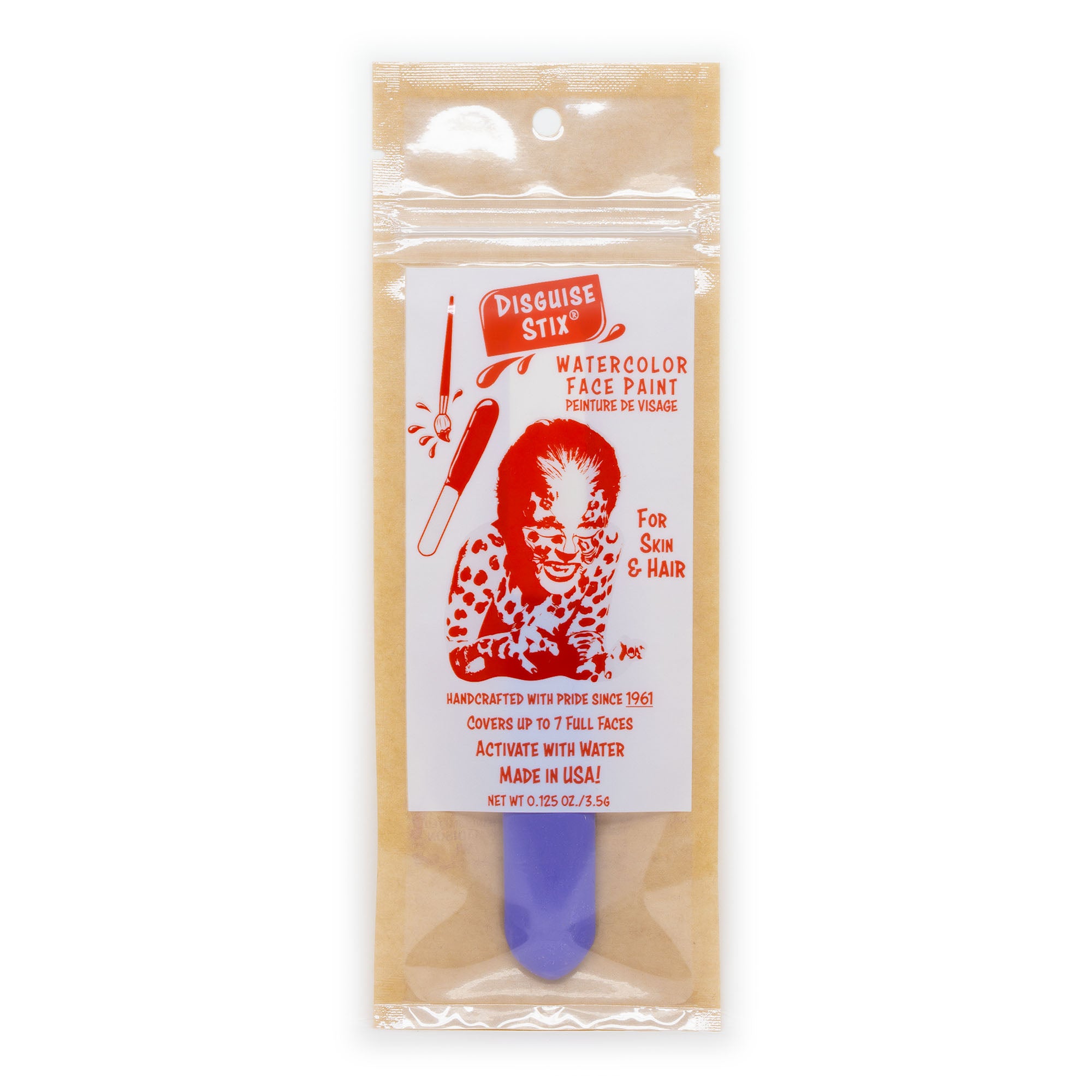 Disguise Stix® is an ultra-mild, soap-based face paint on a stick--the most popular face paint made in America! Each stick supplies enough coloring for a minimum of 5-7 complete faces. The formulation is safe and usable on both skin and hair. Once dry, the coloring will not rub off or smear. It also washes off of and out of anything with just ordinary bar soap and water.
