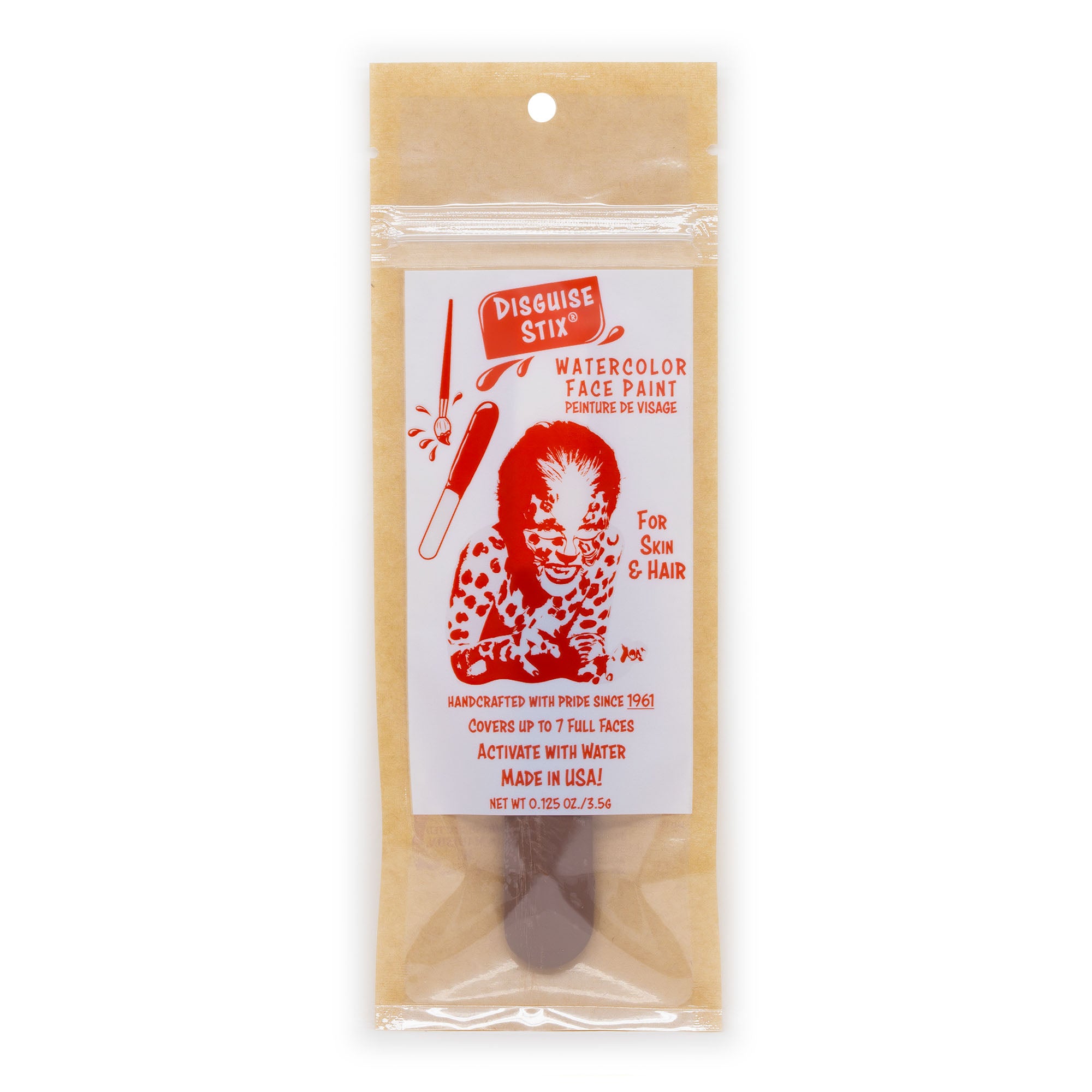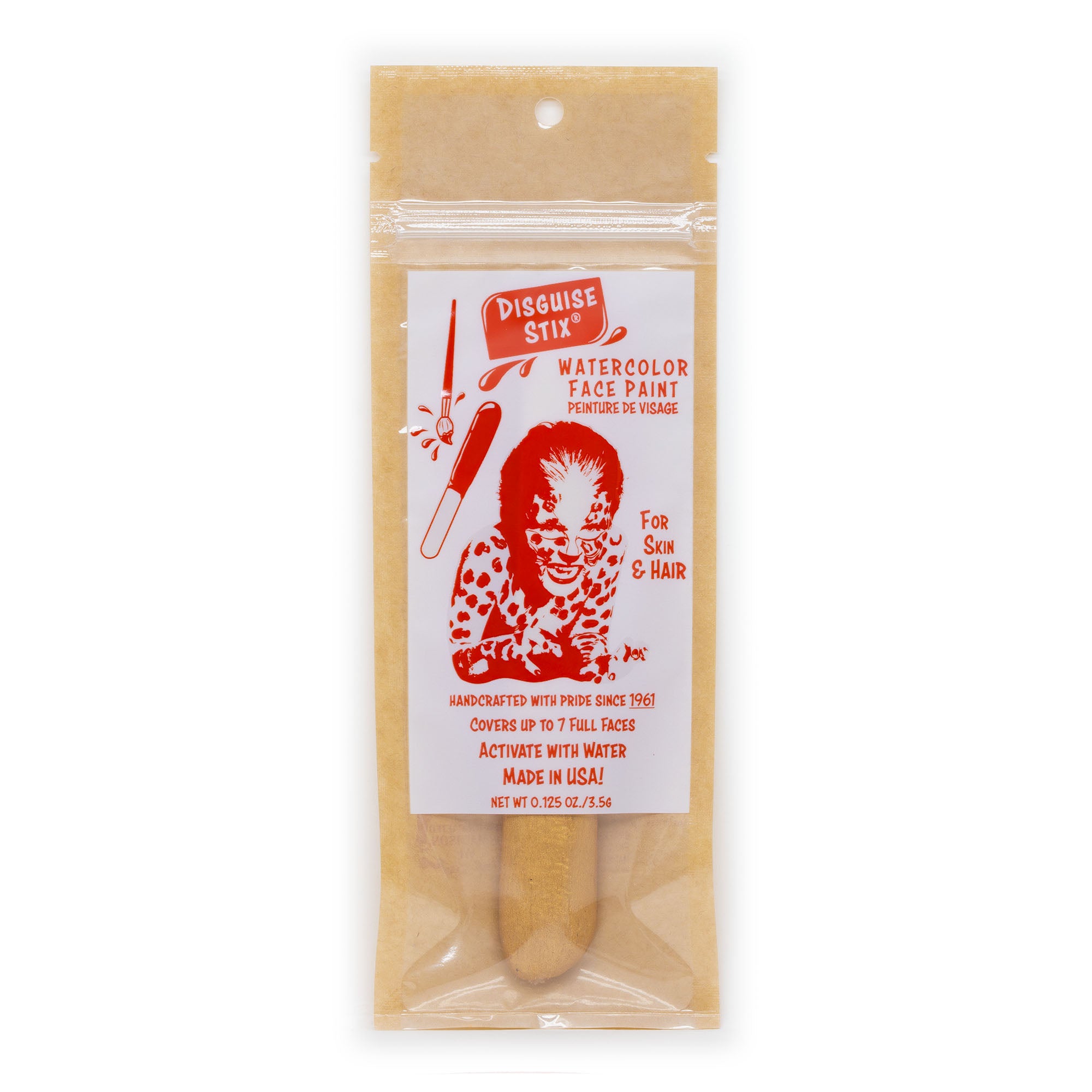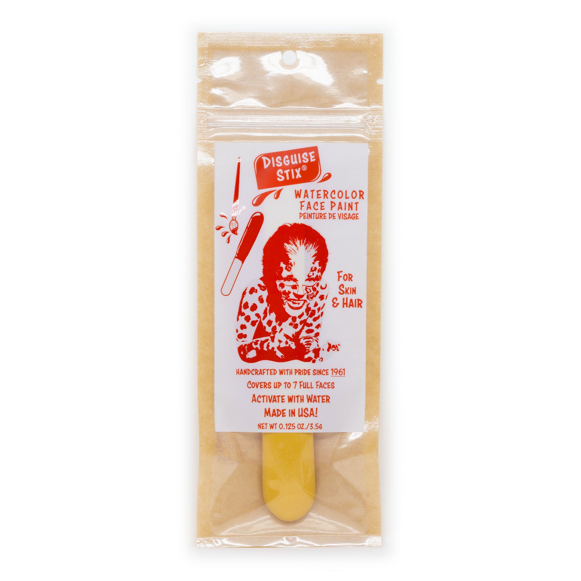 Disguise Stix® is an ultra-mild, soap-based face paint on a stick--the most popular face paint made in America! Each stick supplies enough coloring for a minimum of 5-7 complete faces. The formulation is safe and usable on both skin and hair. Once dry, the coloring will not rub off or smear. It also washes off of and out of anything with just ordinary bar soap and water.