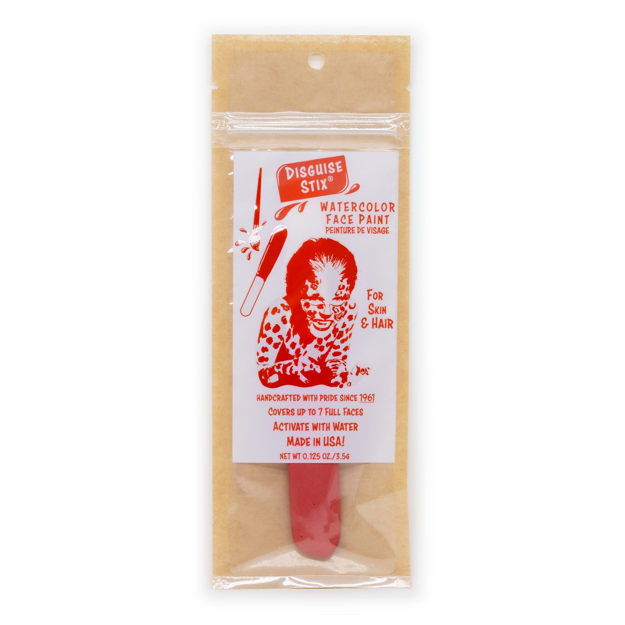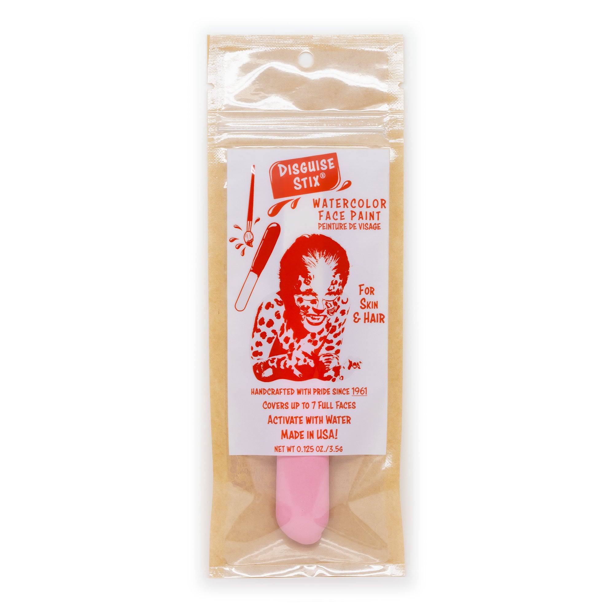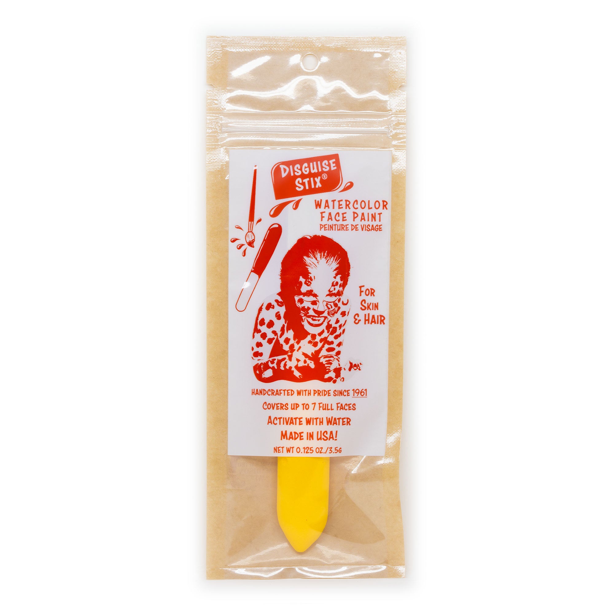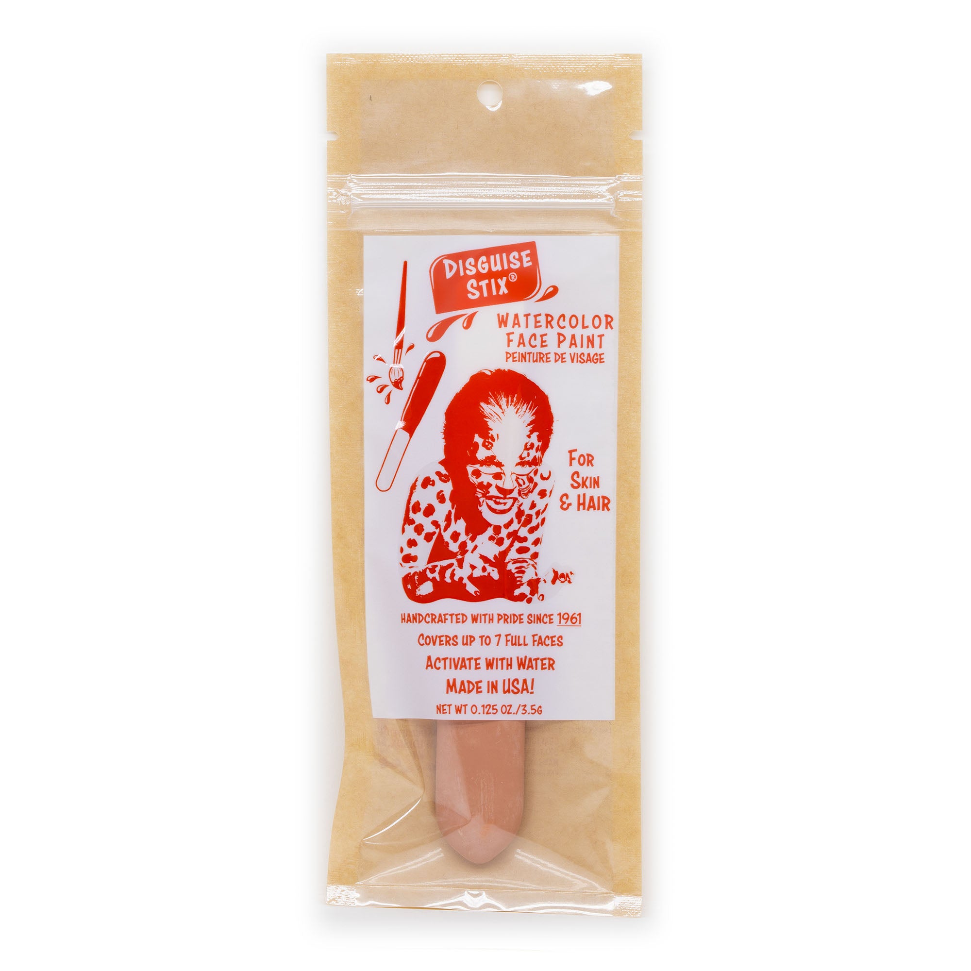 Disguise Stix® is an ultra-mild, soap-based face paint on a stick--the most popular face paint made in America! Each stick supplies enough coloring for a minimum of 5-7 complete faces. The formulation is safe and usable on both skin and hair. Once dry, the coloring will not rub off or smear. It also washes off of and out of anything with just ordinary bar soap and water.
