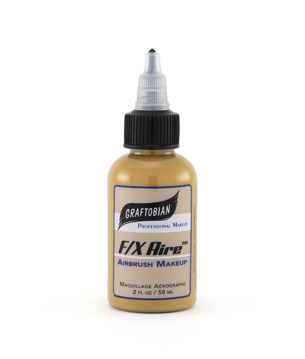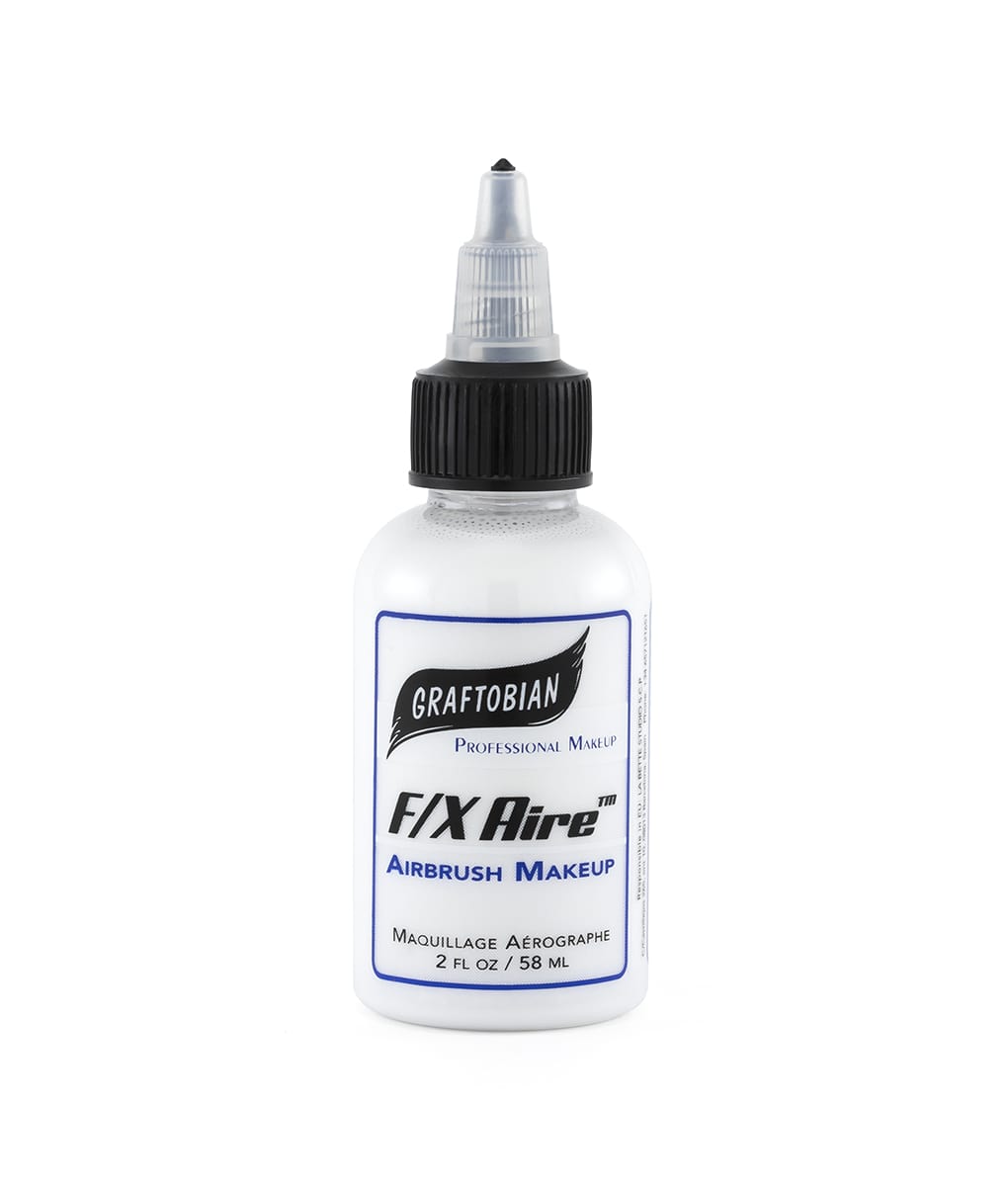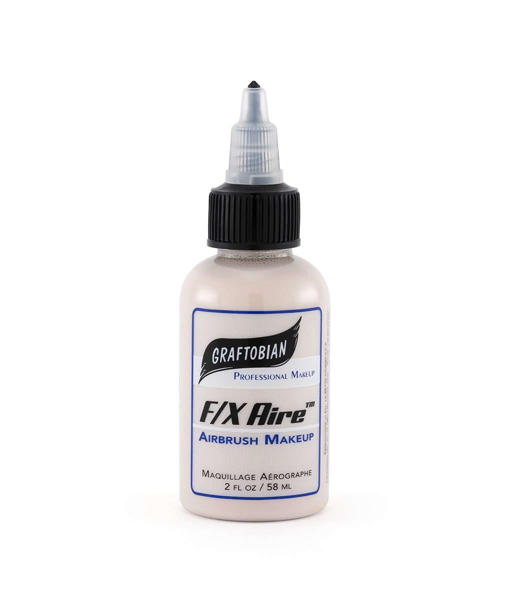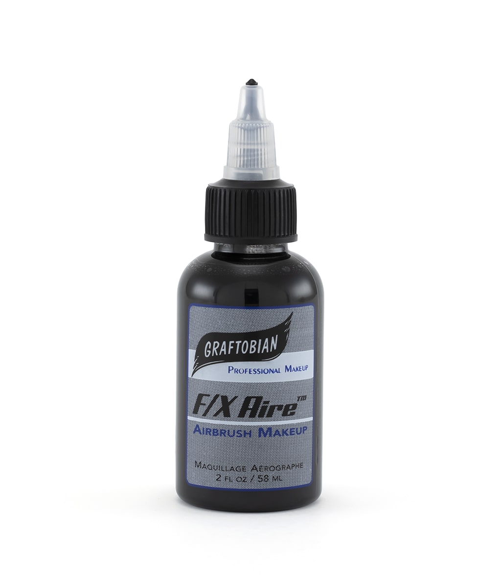 F/X Aire™ is simply the finest, smoothest, most trouble free, alcohol-based HD airbrush makeup formulation available today! If you have to crank your airbrush pressure up to 25psi just to get your paint to go through your gun, you're using the wrong product! Graftobian F/X Aire™ requires low air pressure, only 4-6 PSI, to spray on smoothly and beautifully.
