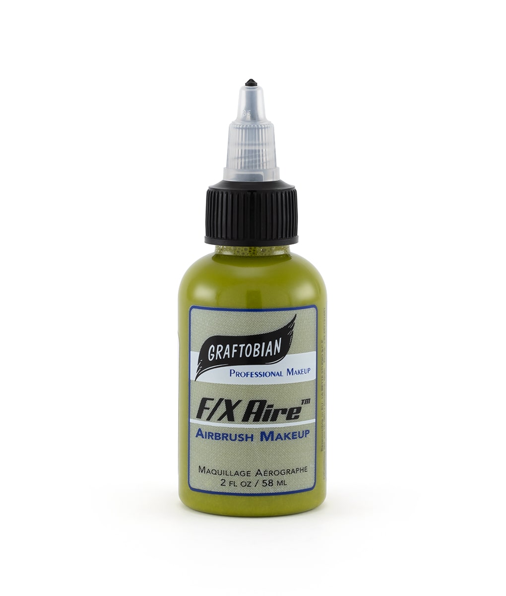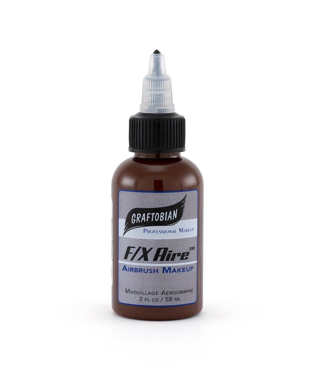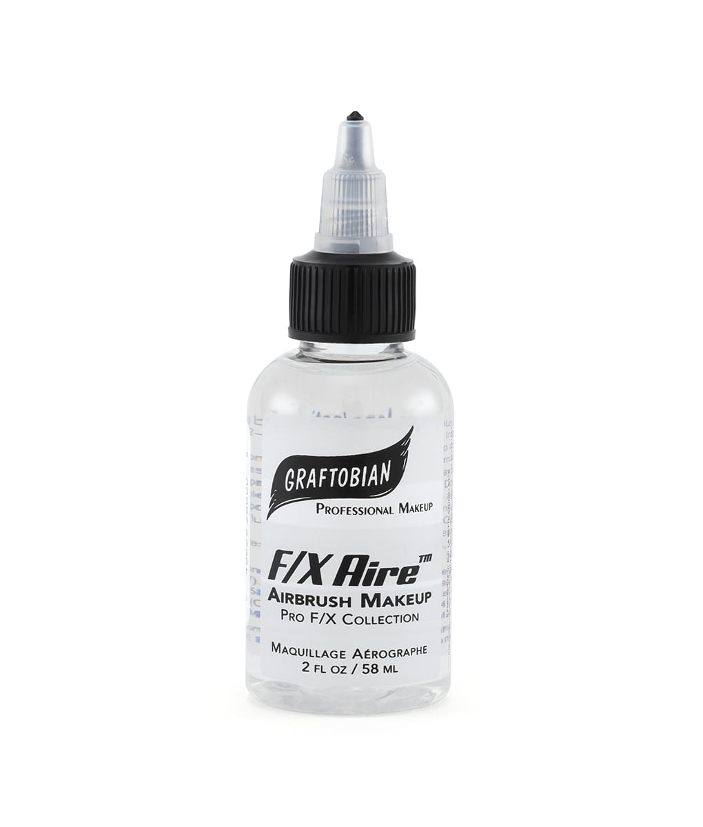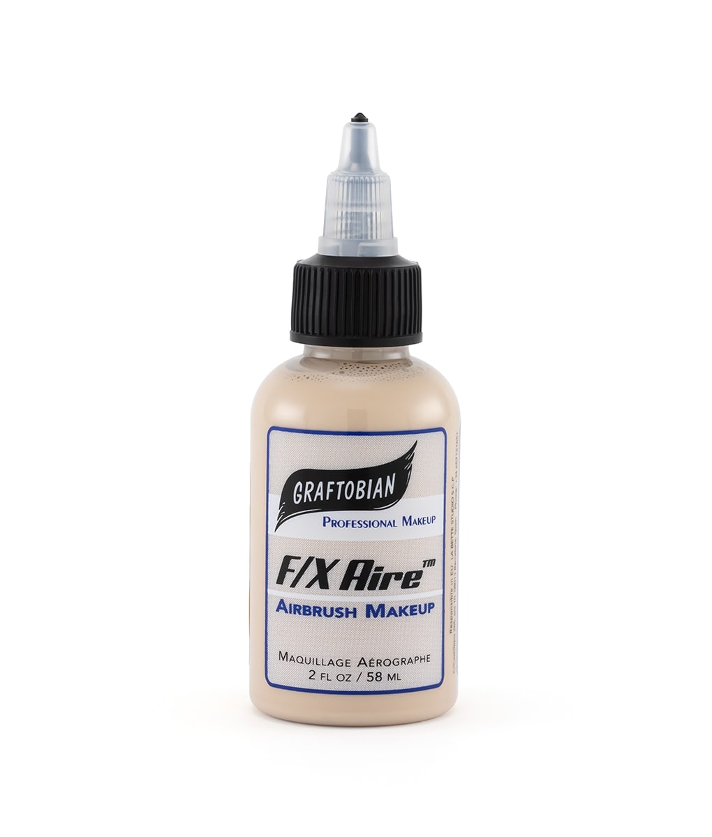 F/X Aire™ is simply the finest, smoothest, most trouble free, alcohol-based HD airbrush makeup formulation available today! If you have to crank your airbrush pressure up to 25psi just to get your paint to go through your gun, you're using the wrong product! Graftobian F/X Aire™ requires low air pressure, only 4-6 PSI, to spray on smoothly and beautifully.