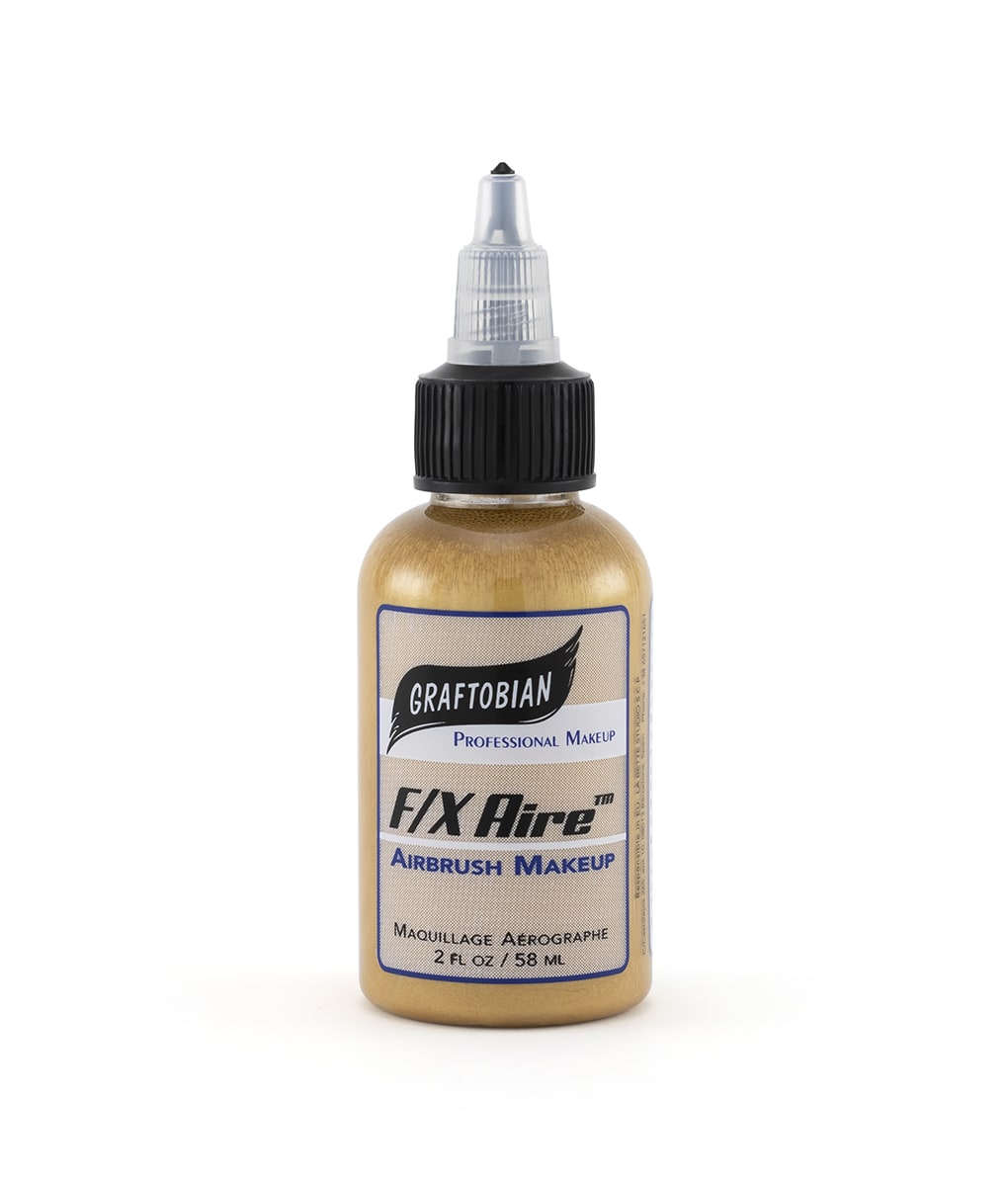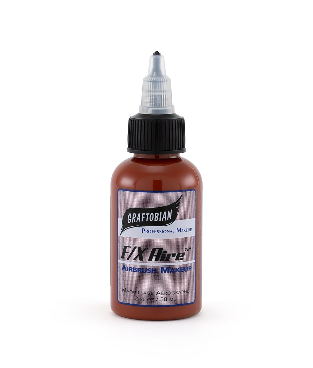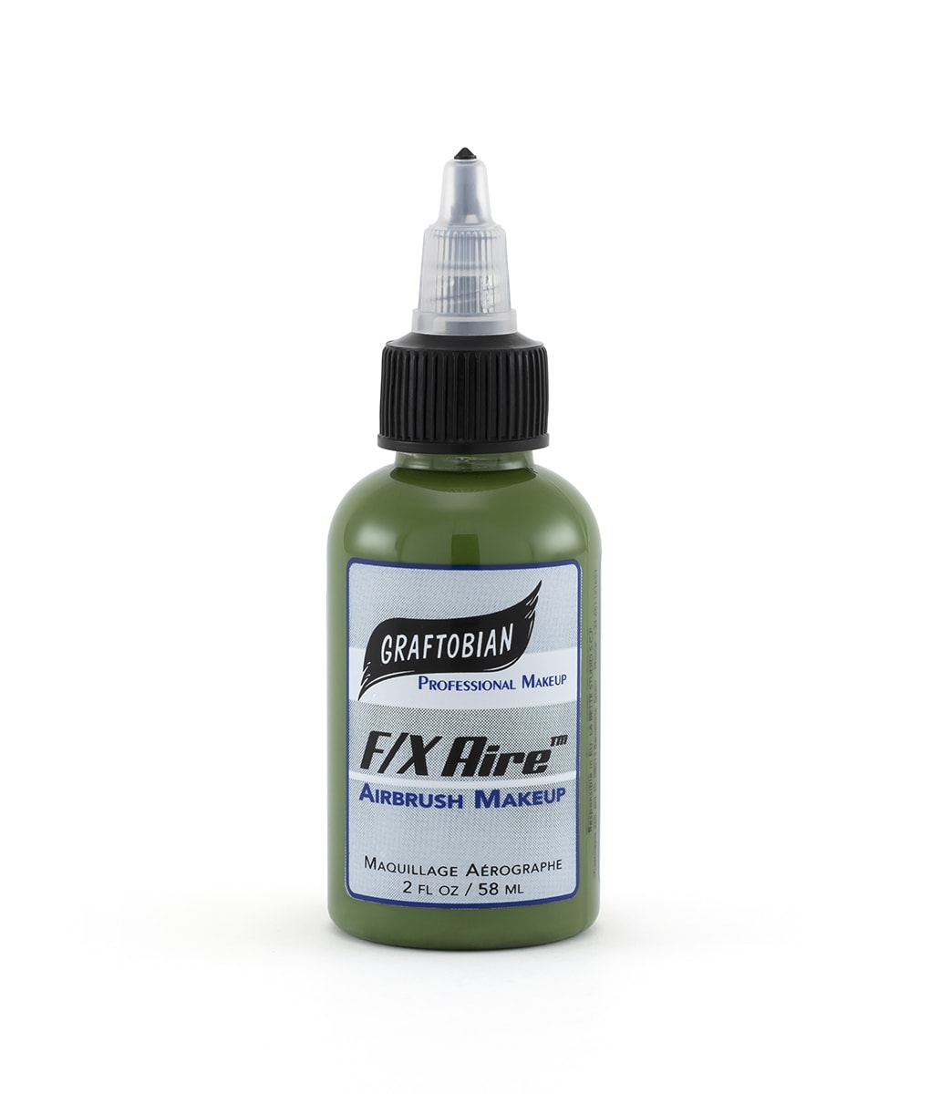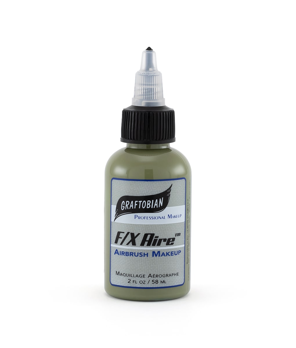 F/X Aire™ is simply the finest, smoothest, most trouble free, alcohol-based HD airbrush makeup formulation available today! If you have to crank your airbrush pressure up to 25psi just to get your paint to go through your gun, you're using the wrong product! Graftobian F/X Aire™ requires low air pressure, only 4-6 PSI, to spray on smoothly and beautifully.