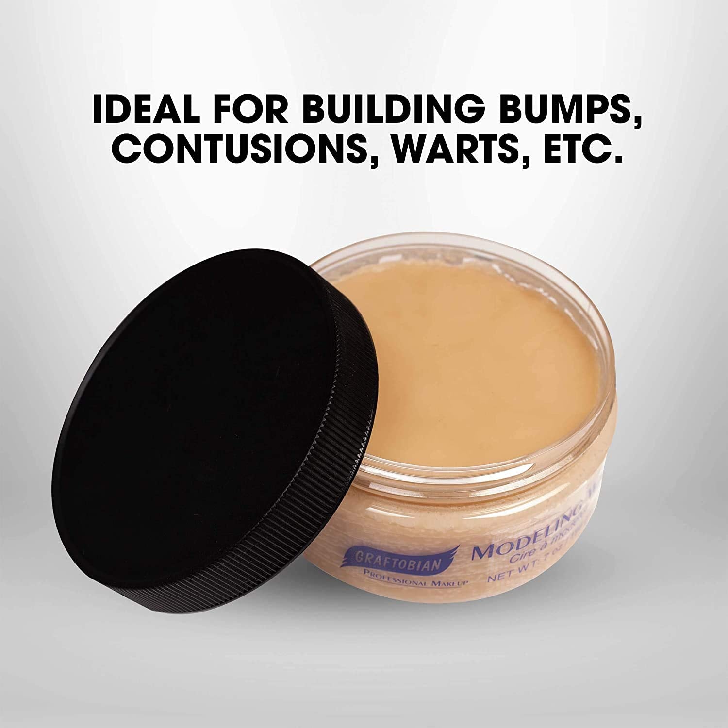 The modeling wax is the perfect product for creating any facial addition, such as warts, broken nose, deep contusion, or cuts. Its pliable yet sticky texture allows it to hold up under stress, making it ideal for long hours of wear.