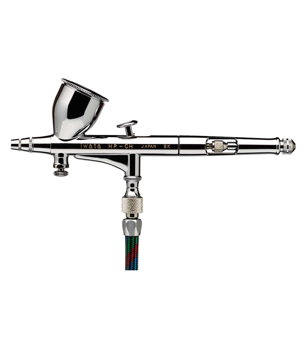 The Iwata HP-CH Hi-Line Airbrush is a great brush for the intermediate to advance airbrush artist. With its .30 mm orifice size and Micro Air Control (MAC) Valve, it enables incremental control of airflow and easy adjustment for a fine to medium spray. This gun was designed for artists who need extreme control for detailed spraying. It also allows you to easily create stipple effects by turning the valve to restrict air flow. and for those who need to be able to Dialing down pressure for safety reasons, such as when spraying near the eyes, is quick and easy. These quick pressure adjustments also come in handy when applying makeup to children or people with sensitive skin. Iwata Hi-Line Series doesn't just change air pressure instantly — it changes the way you airbrush.