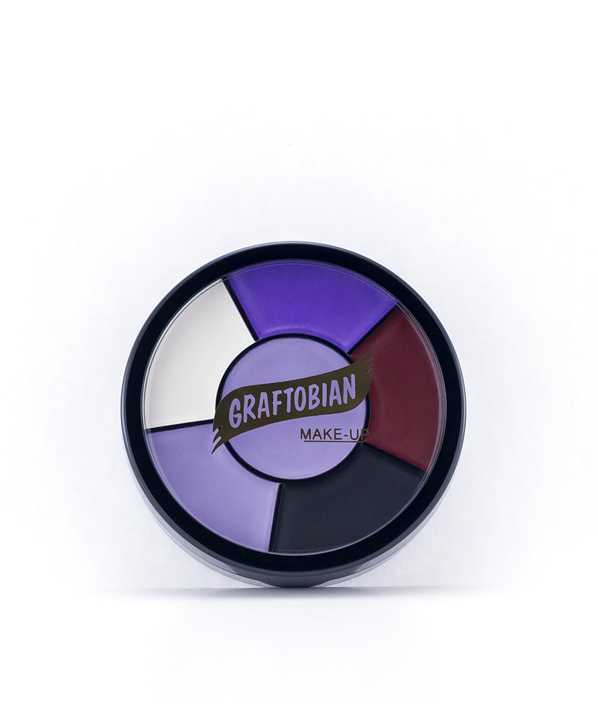 The Vampire Makeup Wheel includes Theatrical Creme Foundations in Blithe Spirit, Purple Passion, White, Maroon, and Black.