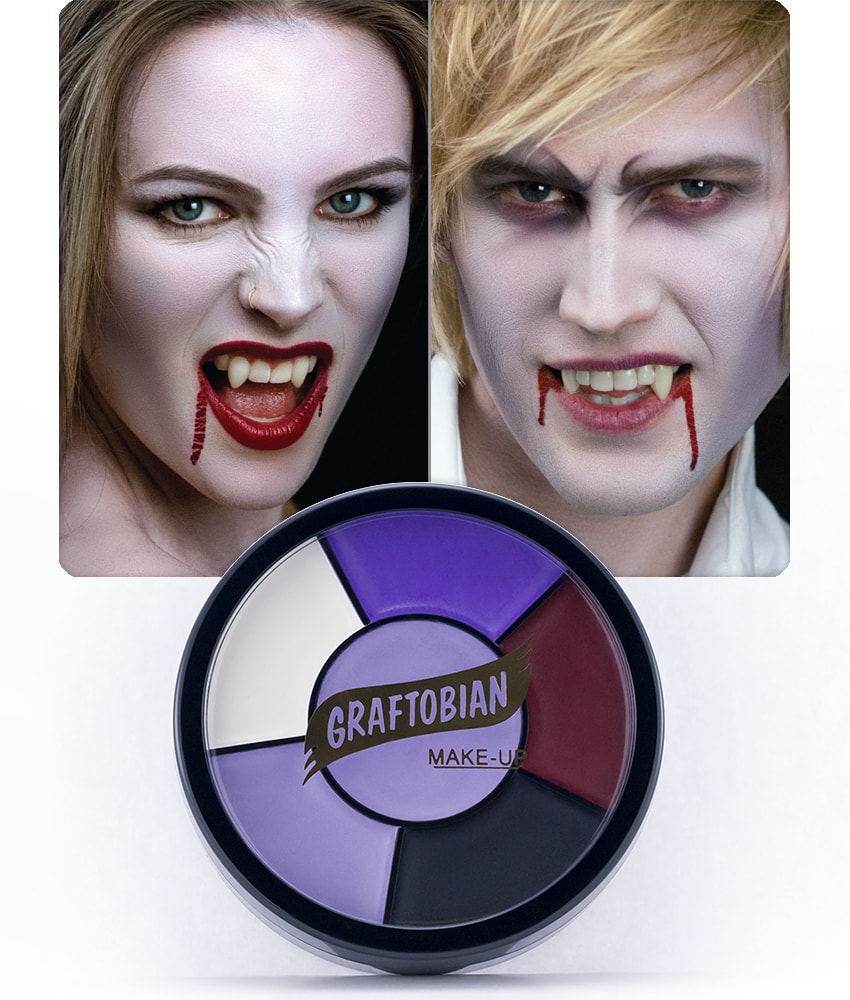 The Carpathian Mountains of Romania birthed a dread creature of the night, possessed of fantastic powers and a taste for human blood. From Gothic myth to modern day urban legend, stories abound of the Vampire! Forever driven to slake their unquenchable thirst they hunt the night. Graftobian’s Vampire Makeup Wheel is here to help you get that immortal appearance!