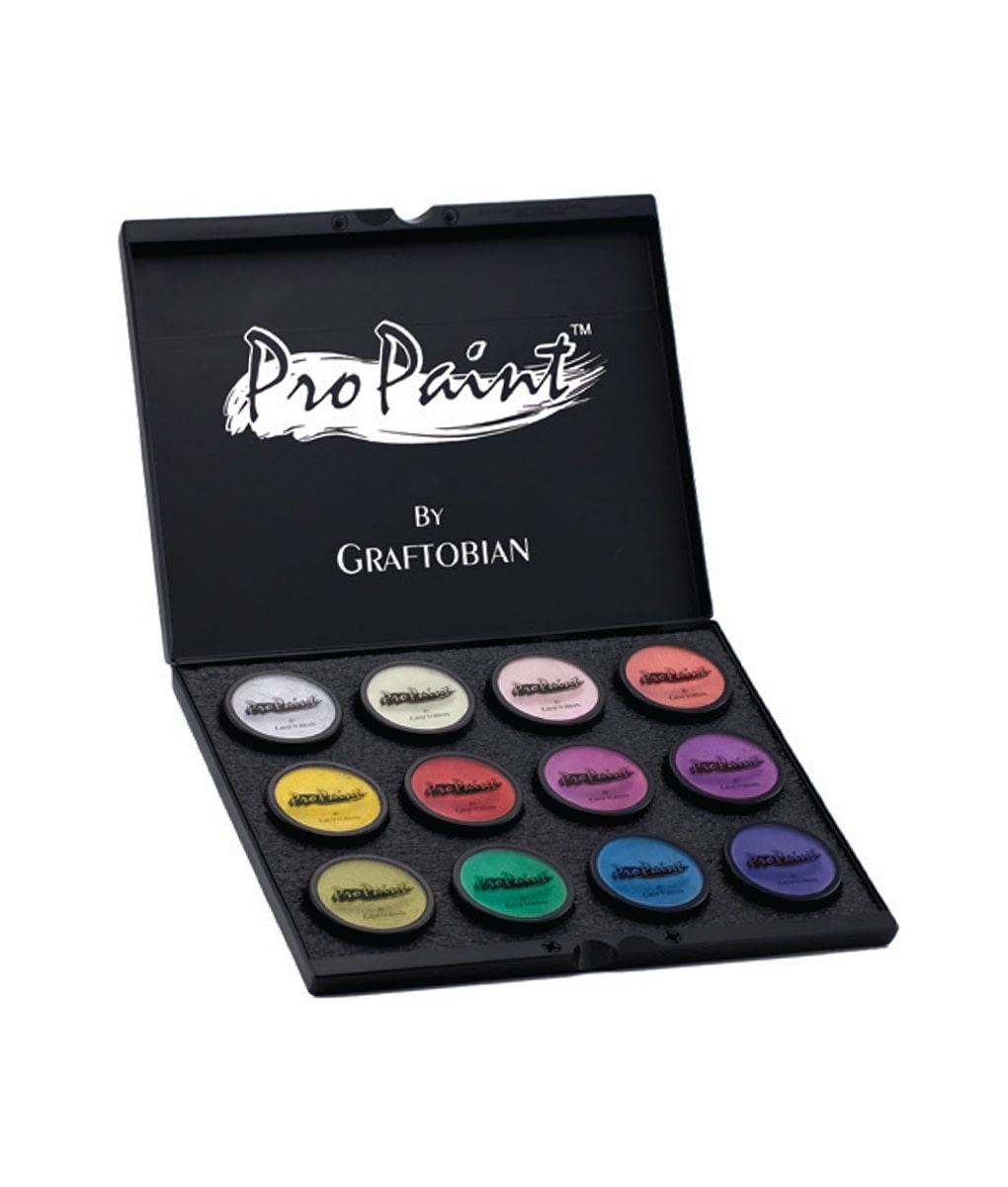 ProPaint™, proudly made in the USA, is a highly blendable body paint and coats large areas easily. You need very little product on your rush or sponge for vibrant and bold coverage. When activated by water, the glycerin-based formula becomes a rich and creamy paint for smooth and consistent application. ProPaint™ dries to a brilliant finish that is comfortable on the skin without feeling heavy or greasy. This amazingly durable paint is smudge proof and long-wearing throughout the day without cracking or peeling. In addition to face and body art, the perfect ProPaint™ shades are great for use as Cosplay makeup and the metallic shades are great for steampunk costumes. Fragance free.