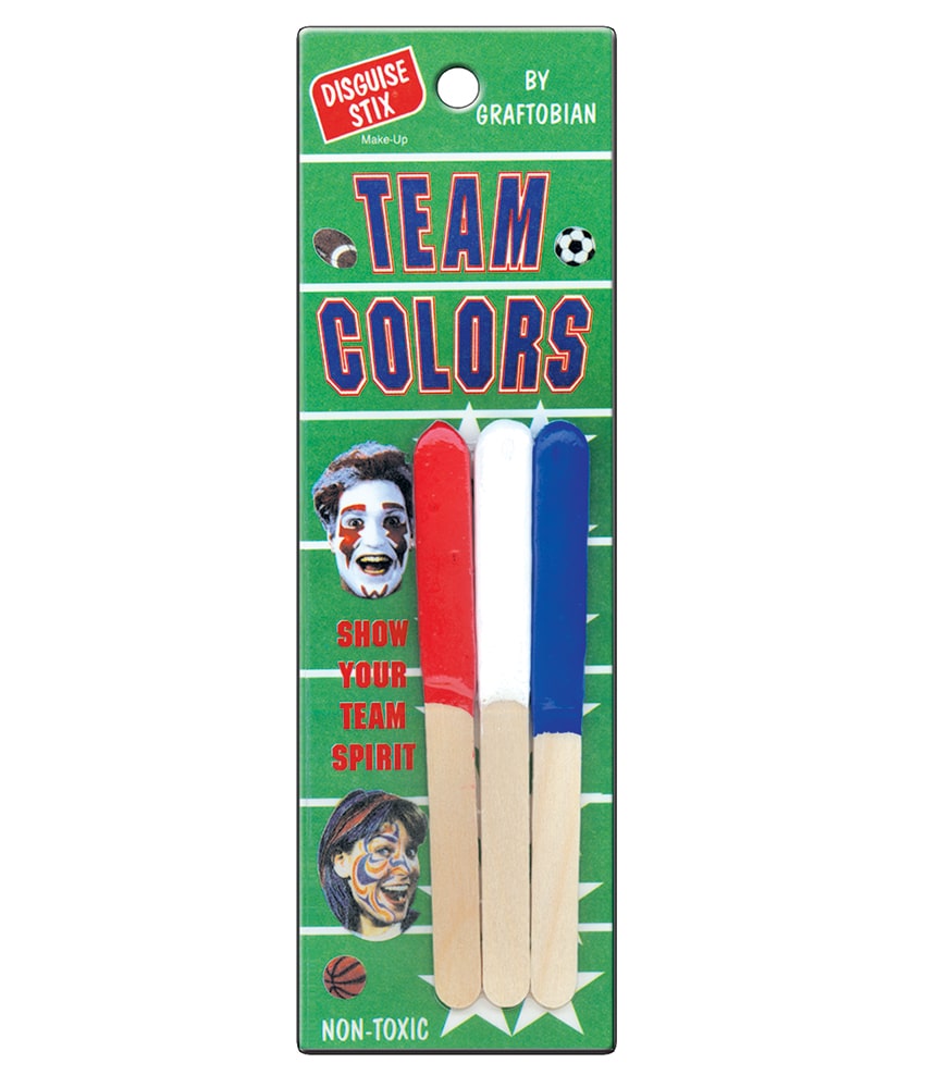 Show your team spirit with Graftobian's Team Colors Kits. Our Disguise Stix® face painting makeup has been helping fans show their Team Colors for more than 40 years. Pick your team's tree colors from our 28 available shades. Fans color their faces, chests, arms, hair, and even their clothes. As always, the ease of use and removal win the day. Once dry, the coloring will not rub off or smear. It also washes off of and out of anything with just ordinary bar soap and water.